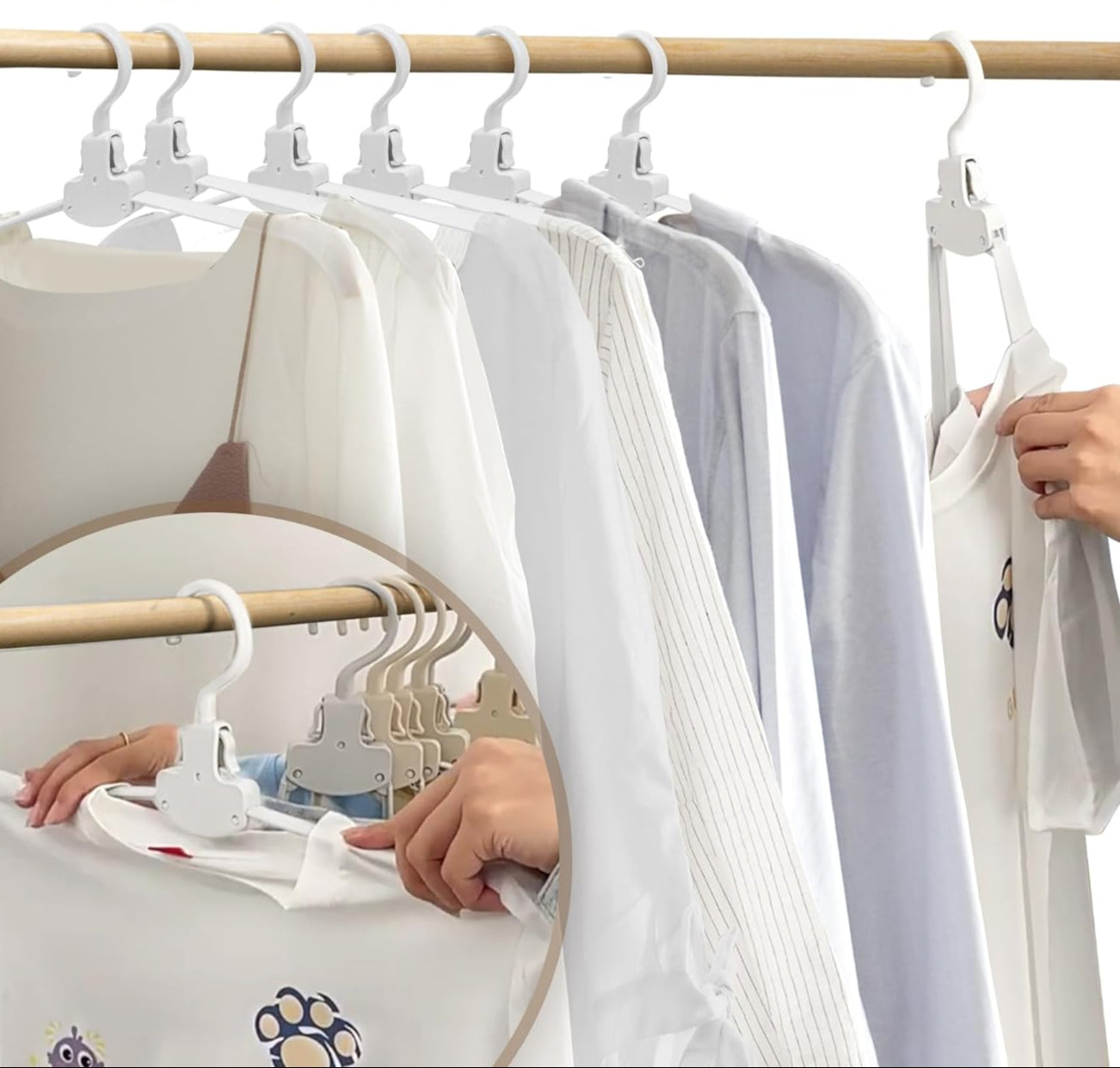 These foldable hangers are designed to prevent your T-shirts and tops from getting stretched around the neck or shoulders. They also save space and are super easy to use with a one-touch folding mechanism.